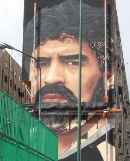 Un artista callejero de Italia realizó una obra muy especial para los hinchas del Nápoli. El rostro de Diego Armando Maradona ya luce en una de las calles del sur del país, como parte de los festejos por el primer scudetto que el club obtuvo en su historia.