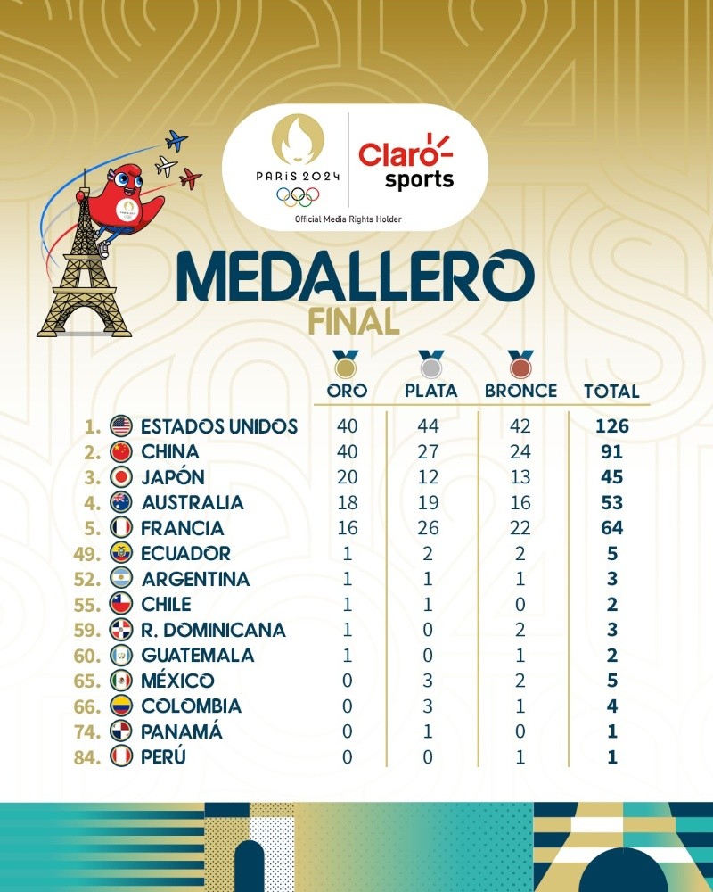 París 24 es la peor marca desde 1968 (sin contar Los Ángeles 84 y Seúl 88, a los que boicoteó).