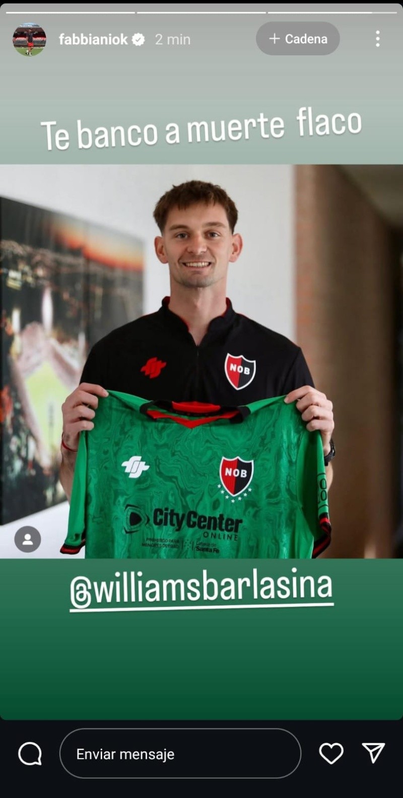 “Te banco a muerte flaco”, publicó el Ogro en una historia de la red social Instagram este domingo a la tardecita, junto a una foto del guardameta de 27 años que regresó para este segundo semestre de la temporada al parque Independencia, en principio para ser el suplente de Navas.