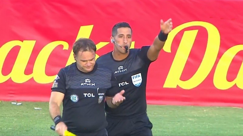 Pese a que rápidamente recibió la atención médica por parte del Cuerpo Médico del Bodeguero, el colegiado claramente seguía afectado por el golpe y Falcón Pérez comunicó a los capitanes Federico Rasmussen y Guido Herrera que no se podía seguir con el encuentro.