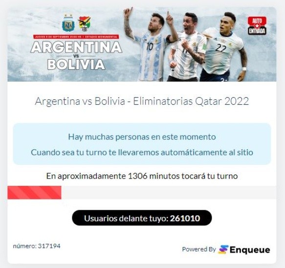 La Asociación del Fútbol Argentino (AFA) puso en venta este martes las entradas para el partido de la Selección Argentina este jueves ante Bolivia por las Eliminatorias Sudamericanas rumbo al Mundial de Qatar 2022. Se habían puesto unos 17 mil tickets a la venta a través de un sitio web que estuvo colapsado.