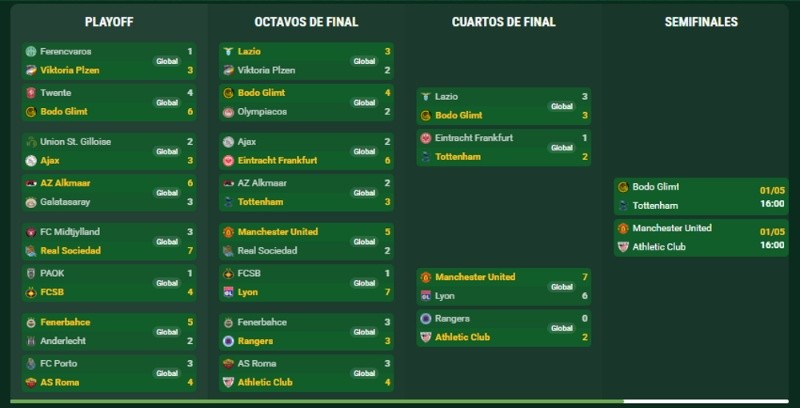 Por su parte, el Tottenham inglés se impuso 1 a 0 de visitante ante el Eintracht Frankfurt y también estará en semifinales. El partido de ida había terminado 1 a 1.