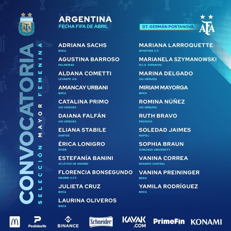 La AFA dio a conocer la lista de convocadas para estas dos fechas FIFA, que serán especiales, ya que es el reencuentro de la selección con el público tras la pandemia. El último partido que se disputó en Argentina fue en la previa de los Juegos Panamericanos 2019, competencia en la que la Selección obtuvo una medalla por primera vez en su historia.