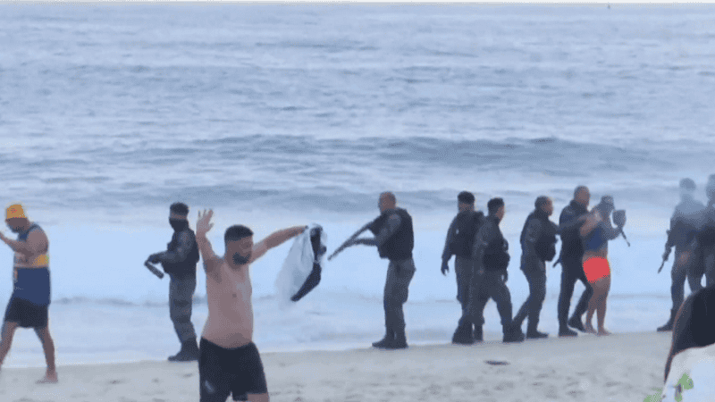 La Policía de Rio De Janeiro está reprimiendo con balas de goma y gases lacrimógenos a los hinchas de Boca ���� y Fluminense ���� que estaban en la playa pic.twitter.com/xlA1hr4IHD