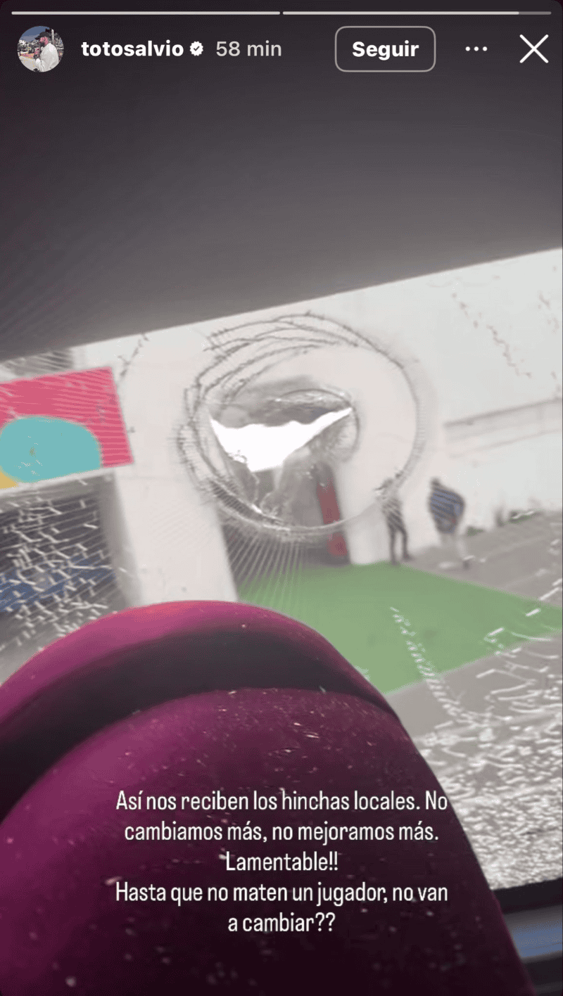 “Así nos reciben los hinchas locales. No cambiamos más, no mejoramos más. Lamentable! Hasta que no maten a un jugador, no van a cambiar?”, escribió en una historia de Instagram.