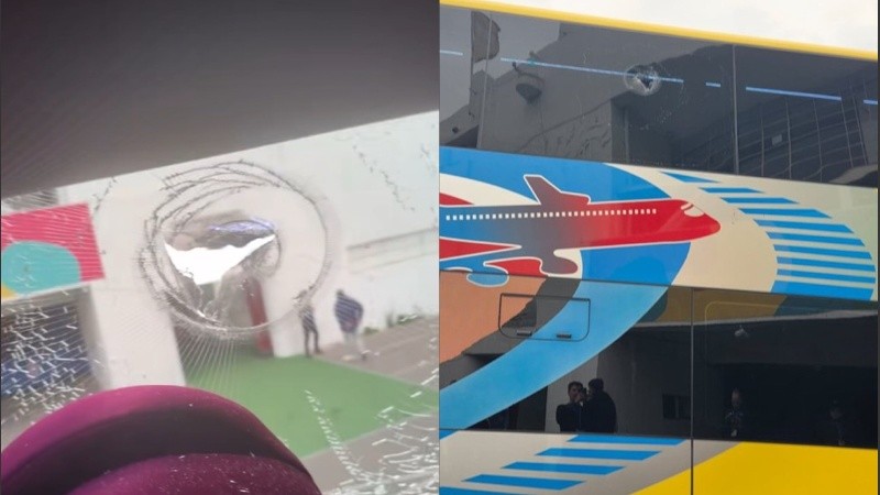 Esta vez, uno de los piedrazos arrojados por la parcialidad chilena impactó en el vidrio del vehículo, cerca de Facundo Sánchez y Gonzalo Pérez.