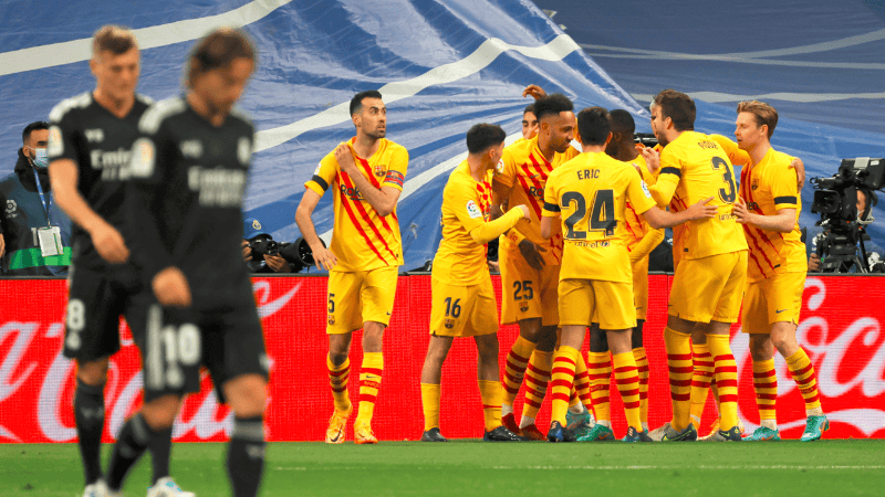 El gabonés Pierre Emerick Aubemeyang en dos ocasiones (29m. 1T y 6m. 2T), el zaguero uruguayo Ronald Araújo (38m. 2T) y el español Ferrán Torres (2m. 2T) marcaron los tantos de la inesperada goleada al líder del certamen.