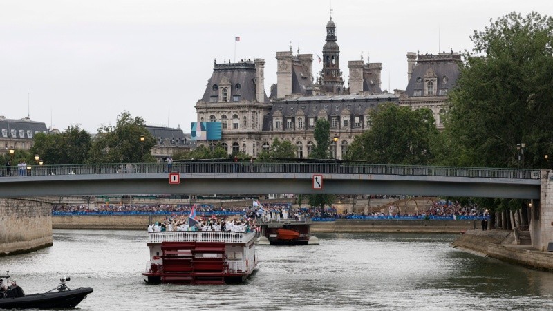 Después, con música tradicional francesa de fondo, comenzó el desfile de las delegaciones. La novedad es que esta vez no es en un estadio cerrado, sino al aire libre con barcazas que surcan las aguas del río Sena. La primera delegación de atletas en pasar frente al palco oficial fue la de Grecia, como siempre ocurre porque en ese país comenzó la historia de los Juegos Olímpicos.
