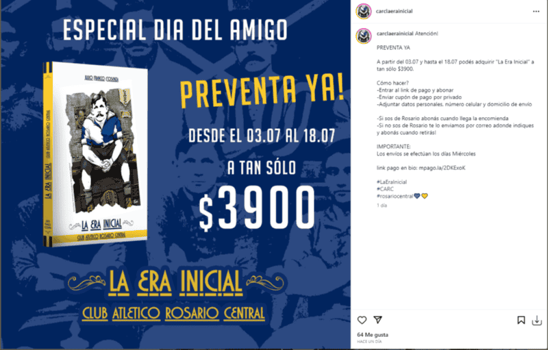 “Mirando, me doy cuenta de que no había publicaciones que contaran detalladamente a nivel amateur y mucho menos atrás de la Fundación. Como por ejemplo, el 24 de diciembre de 1889, ¿qué pasaba antes?; ponernos un poco en contexto político, social, cultural, para saber por qué llegamos a la causa de que 70 parroquianos deciden fundar al Central Argentine para jugar al fútbol”, describió luego.