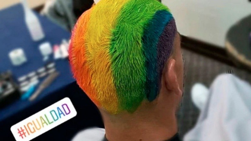 Guzmán se pintó el cabello de morado, azul, verde, amarillo, naranja y rojo y con la palabra "igualdad". En sus redes, explicó el significado de los colores de la tradicional bandera del orgullo.