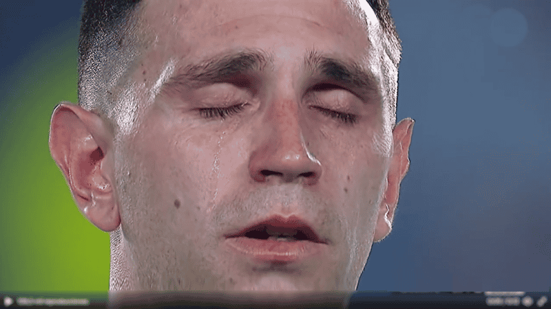 La muestra más clara de ello fue el rostro de Dibu Martínez. El arquero de la selección no pudo contener las lágrimas en la salida del equipo al campo de juego y tampoco durante la ejecución del himno, interpretado por Ariel Ardit.