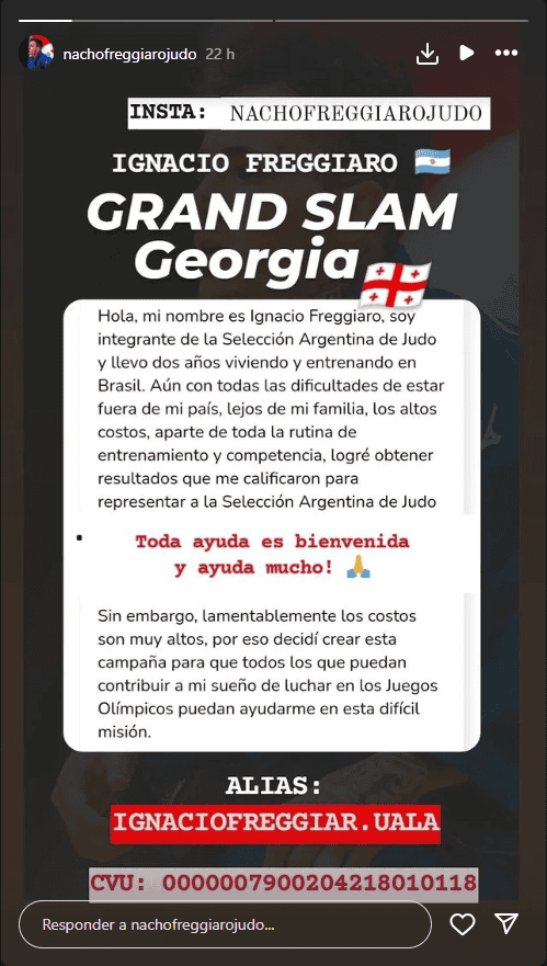 Ignacio Freggiaro, es rosarino, tiene 24 años y actualmente está viviendo y entrenando en judo en Porta Alegre, Brasil. El joven integra la selección argentina, fue seis veces campeón argentino y medallista panamericano y sudamericano. Pero ahora, su sueño es poder clasificar a los Juegos Olímpicos París 2024 a través del ranking de judo.
