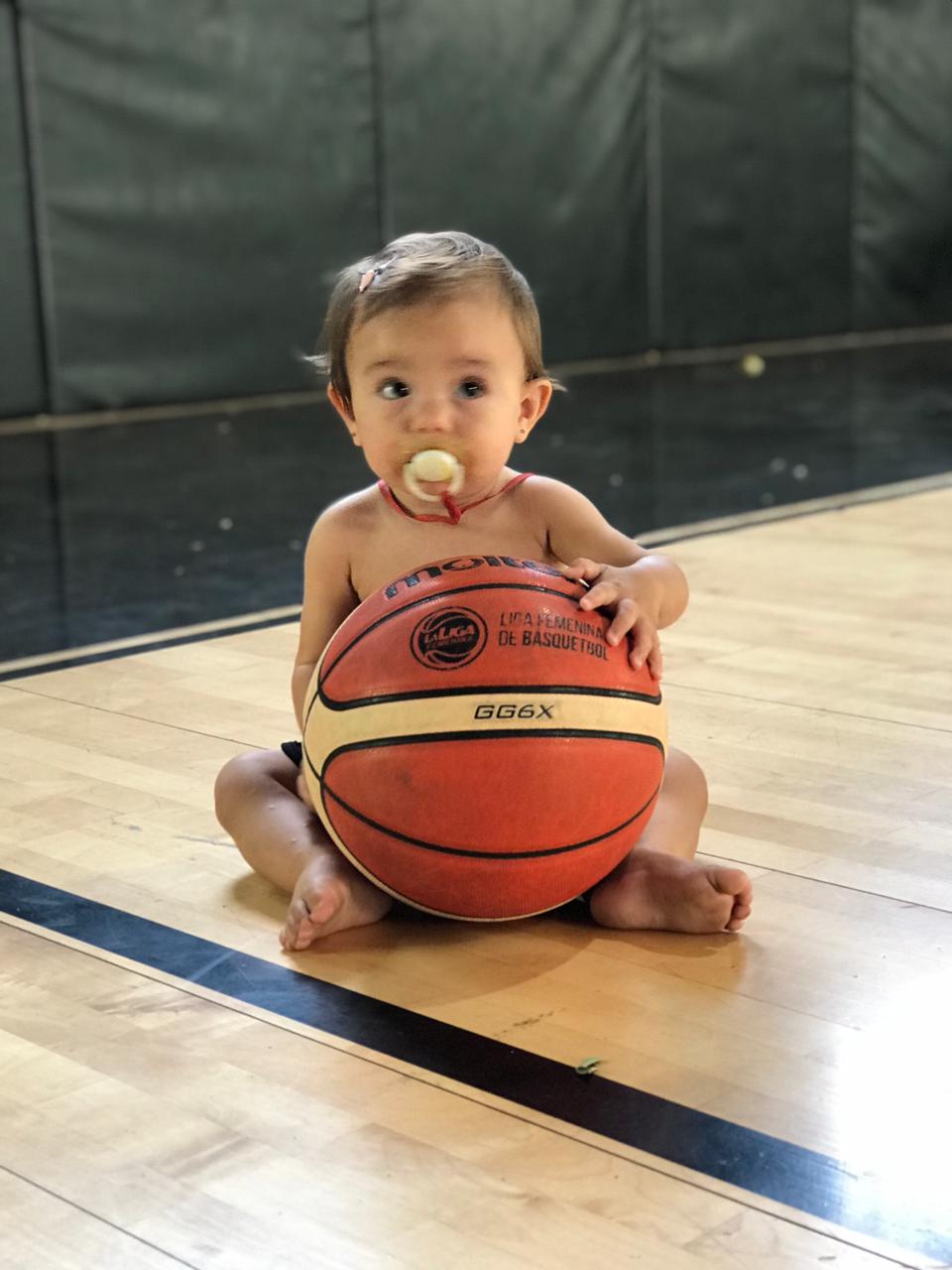 Una imagen que resume la pasión: por el básquet y por ser madre. ����⛹️♀️