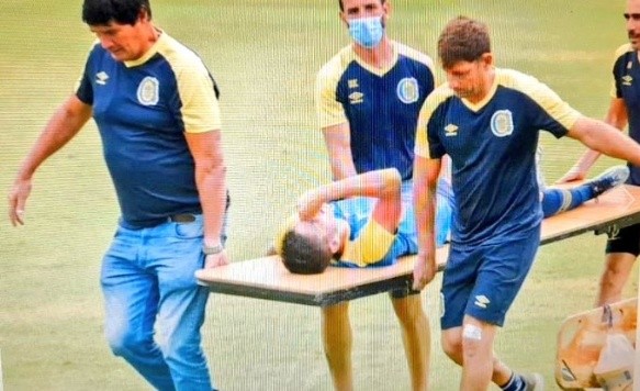 El jugador había entrado por Gino Infantino y luego fue reemplazado por Julio Luques. En varias imágenes se lo vio saliendo en una camilla improvisada.