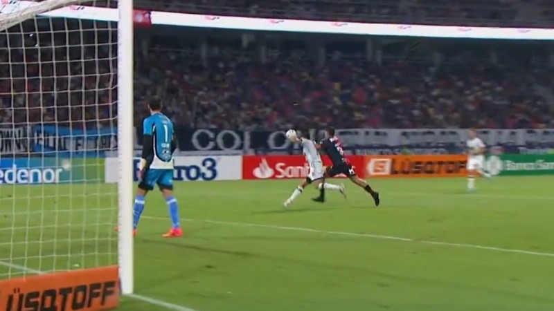 El árbitro Fernando Espinoza, cerca de la acción, no cobró la falta que reclamó el equipo santiagueño, pero el VAR lo llamó y el juez decidió anular el tanto rojinegro.