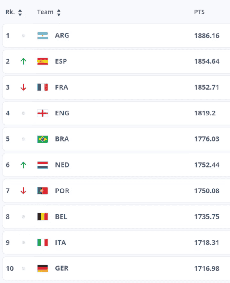 El equipo dirigido por Lionel Scaloni no solo se afianzó en el primer puesto, sino que a excepción de Inglaterra, que consiguió victorias ante Albania y Letonia, fue el único seleccionado de los diez primeros en ganar todos los últimos encuentros.