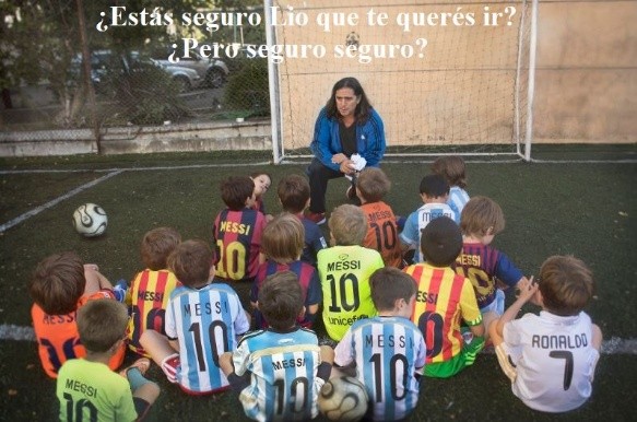 Y varios chicos escuchando a su entrenador, todos -menos uno- con camisetas de Messi, también fue muy replicada.