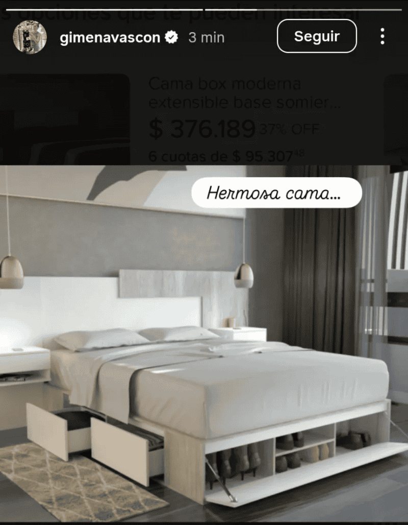 "Hermosa cama", publicó Gimena Vascon, la mujer del Ogro. Horas antes, había subido la foto de otro mueble. La mujer expuso lo que muchos hinchas leprosos también postearon en redes sociales.