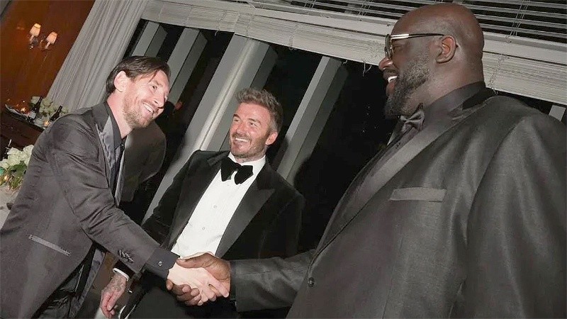 Lionel Andrés Messi se encontró con el ex basquetbolista estadounidense Shaquille O'Neal y hubo foto. La icónica imagen entre los dos referentes del deportes mundial surgió en la fiesta de cumpleaños número 50, por adelantado, del propietario del Inter Miami, David Beckham.