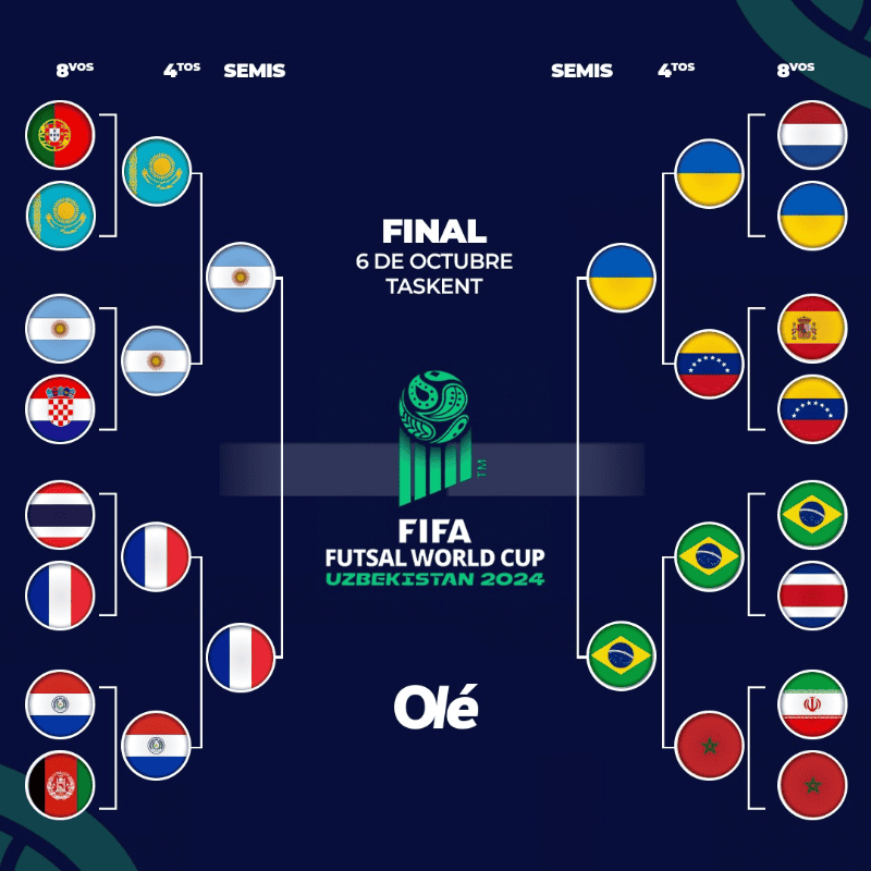 La selección argentina de futsal goleó 6-1 a su par de Kazajistán en el Humo Arena de Tashkent y clasificó a la semifinal del Mundial de Uzbekistán 2024, donde enfrentará a Francia el próximo jueves 3 desde las 12 (hora argentina).