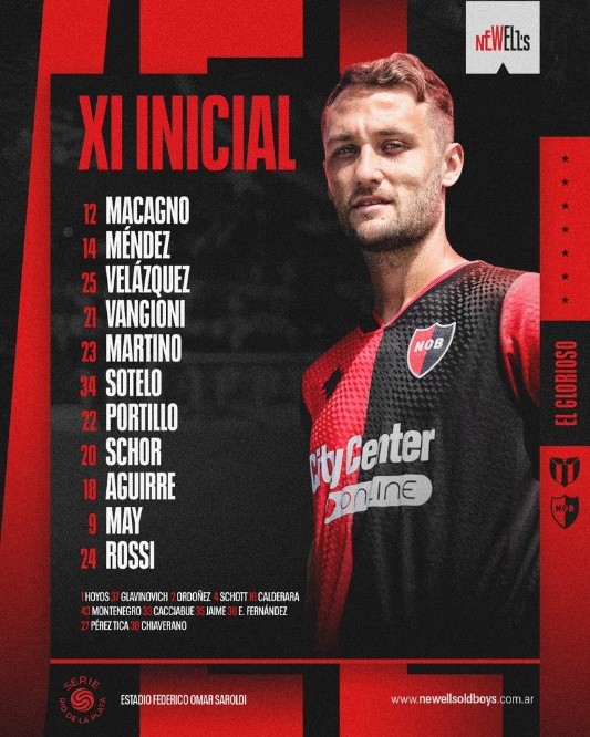 En ese rearmado, Newell's quedó alistando a los siguientes 11 futbolistas: Macagno; Schott, Ordoñez, Glavinovich, Calderara; Cacciabue, Esteban Fernández, Lisandro Montenegro; Misael Jaime, Pérez Tica y Chiaverano.