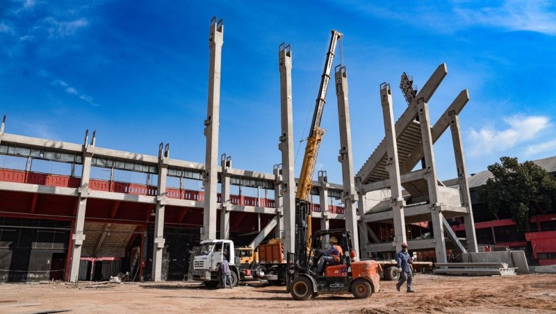 En medio de un clima tenso con los hinchas por los malos resultados y de la feroz interna de la barra brava, Newell's dio a conocer este viernes nuevos avances en las obras de la nueva tribuna popular en el Coloso y mostró imágenes del montaje del primer módulo de gradas de los doce que conformarán la segunda bandeja que da espaldas al Palomar del parque Independencia.