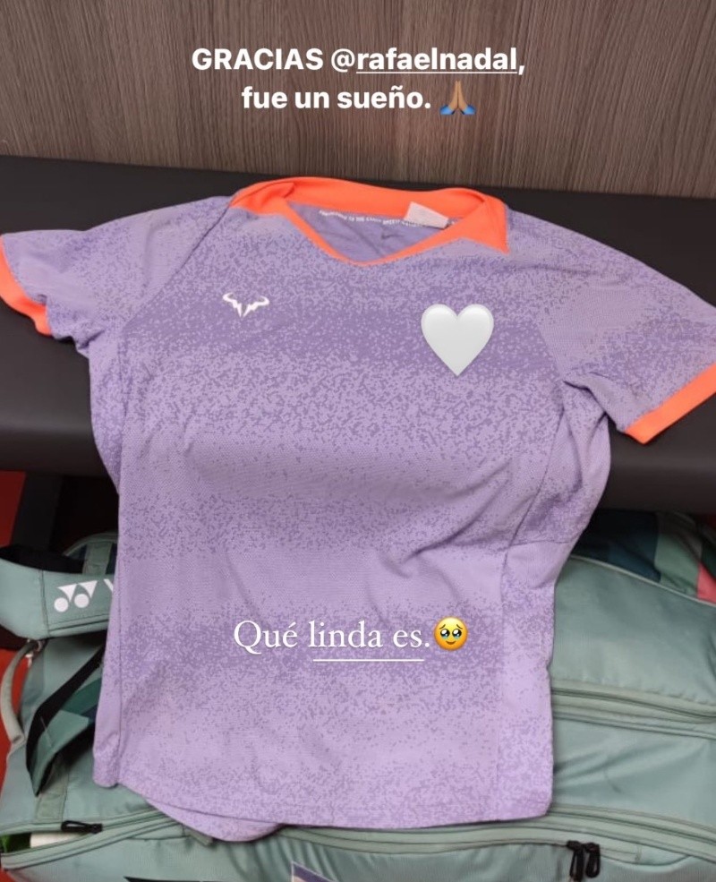 Una vez consumada su derrota en la capital española, el tenista cordobés saludó a Nadal, le dijo que enfrentarlo era "un sueño cumplido" y sorprendió al pedirle si podía quedarse con su camiseta, algo que el de Mallorca luego hizo realidad en los vestuarios.