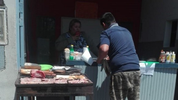 A 20 metros del estadio, el humo tradicional del choripán. Pero no eran diez o veinte parrillas: apenas un vendedor solitario con un puñado de chorizos y carne sobre las brasas. Lo suficiente para abastecer a dirigentes y periodistas.