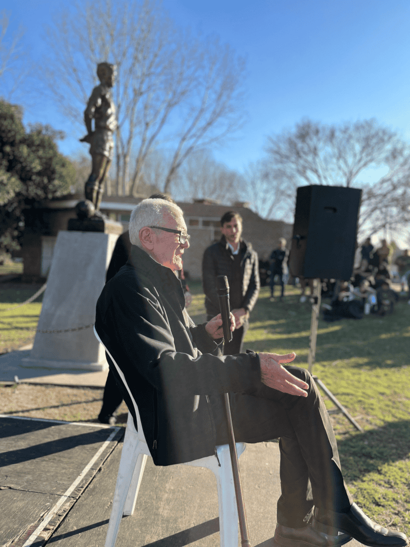 Bastón en mano y en una silla de plástico, Solari contó cómo se fundó el club en aquel 1975 con Jorge Raúl Solari, su hermano Eduardo, Ermindo y Daniel Onega, y Luis Artime.
