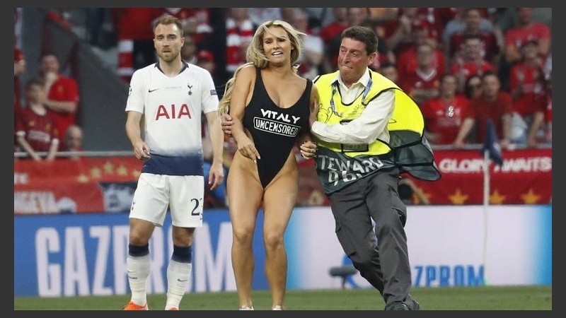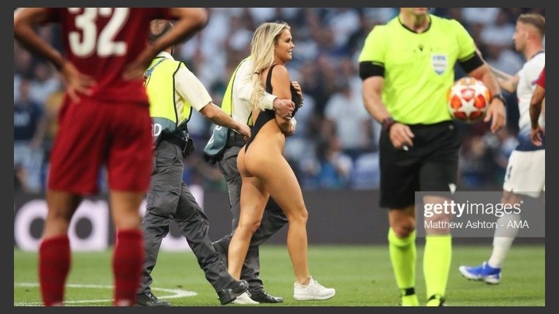 Una mujer se coló en el campo de juego de la final de la Champions League y si bien la transmisión oficial optó por no mostrarla todos se preguntaron quién es y qué quiere.
