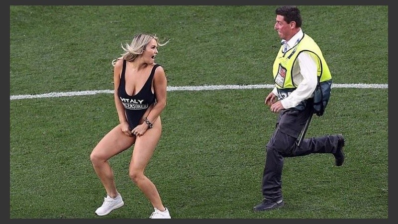 El árbitro esloveno Damir Skomina paró el juego y dos agentes de seguridad capturaron a la mujer y la sacaron para que pudiera continuar el partido.