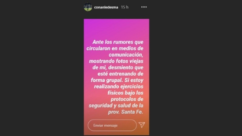 En las últimas horas circularon por la web fotos y video de un supuesto trabajo futbolístico de los guardametas canallas bajo la supervisión de Hernán Castellano. Las fotografías son las que ilustran el artículo y el video aparece a continuación. El club publicó un comunicado para "desmentir la información malintencionada y maliciosa, vertida y expuesta en el día de la fecha por medios de Buenos Aires", asegurando que "para la Institución es prioritario el cuidado de la salud y el bienestar público de todos los ciudadanos". La dirigencia remarca que "la situación sanitaria en la provincia de Santa Fe contempla el entrenamiento de la actividad física individual", pero aclara que "los jugadores del plantel superior continúan con sus entrenamientos en forma individual". "Tanto cuerpo técnico, como jugadores, y dirigentes de la Institución se encuentran abocados a la concientización sobre la pandemia del Covid-19 y nunca incumplirían con las normas y protocolos de salud establecidas por Nación, Provincia y Municipio", afirman. Mientras que Jeremías Ledesma, uno de lo jugadores apuntados por los rumores, publicó una historia en su cuenta de Instagram en la que afirma que las fotos no son actuales.