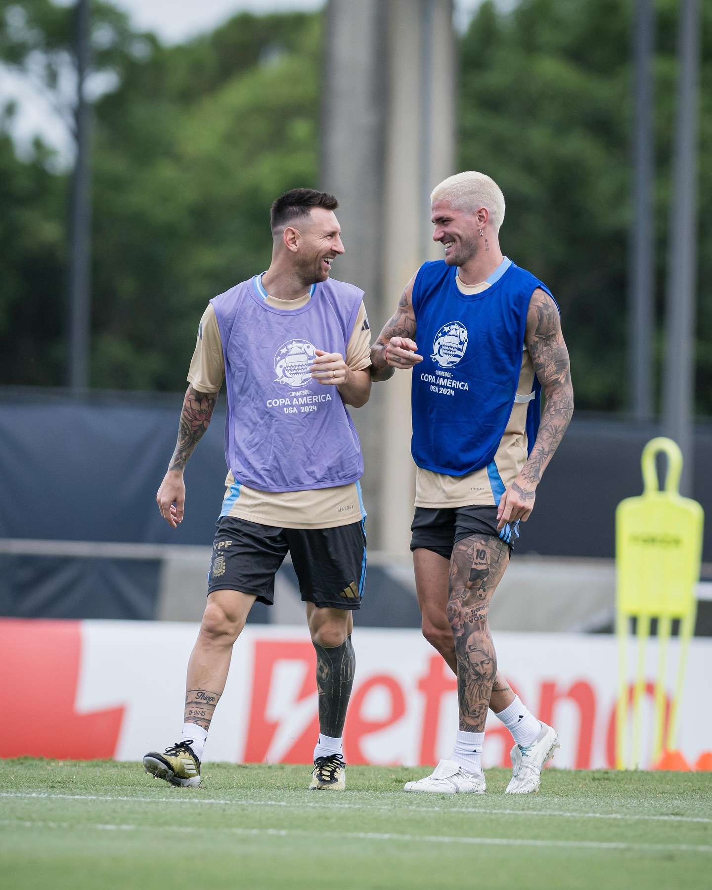 El nuevo look de De Paul ya se dejó ver este sábado, durante el entrenamiento de la selección en la Universidad de Florida, el último antes del gran partido por el título.