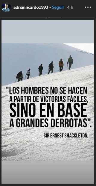 En medio de este panorama complicado, Centurión publicó una historia con una frase con un toque épico dándose ánimo para revertir esta situación. "Los hombres no se hacen a partir de victorias fáciles, sino en base a grandes derrotas", subió a Instagram.