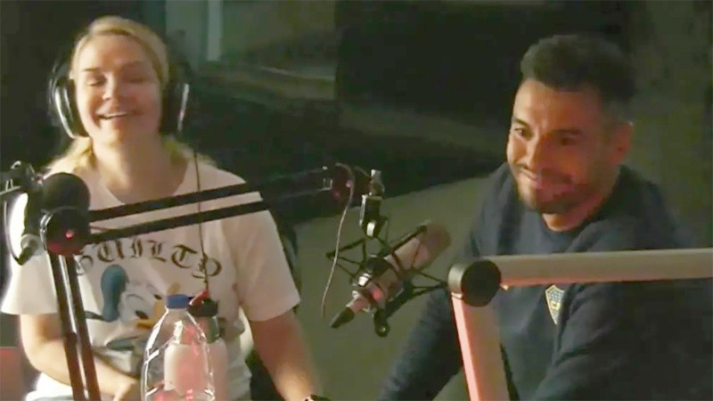 Tras ser la gran figura de la clasificación de Boca a la final de la Copa Libertadores, Chiquito Romero llegó al país y lo primero que hizo fue ir a buscar a su esposa, Eliana Guercio, de sorpresa, al lugar donde trabaja, el programa de radio de Santiago Del Moro.