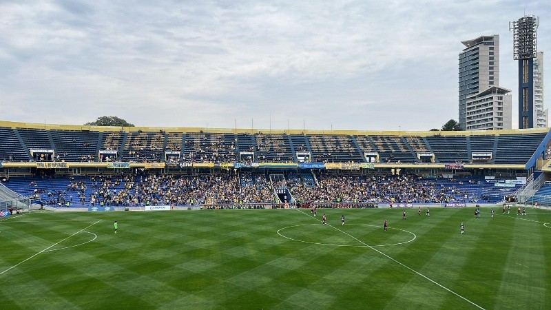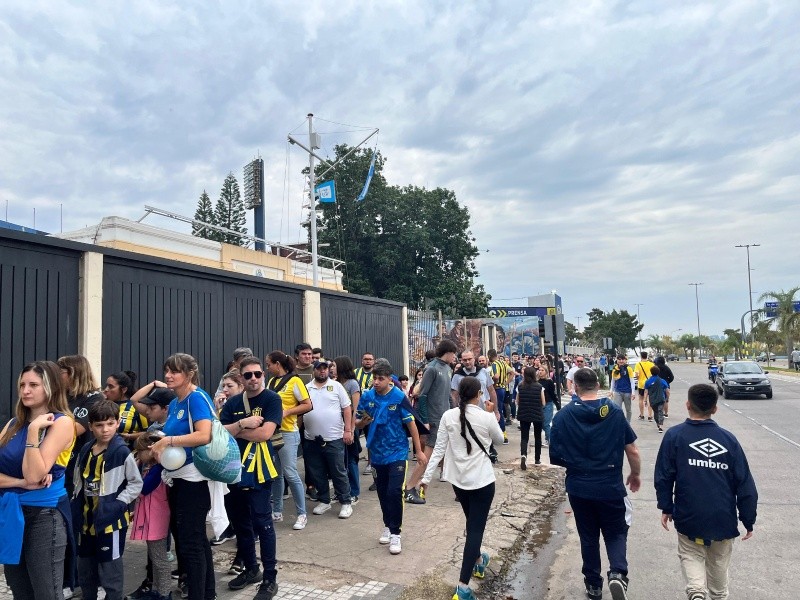 Faltaban cinco minutos para el inicio del partido y había cinco cuadras de personas esperando para ingresar por puerta 5. Dentro del estadio, la platea Río se pintó de azul y amarillo y colmaron las butacas del Gigante.