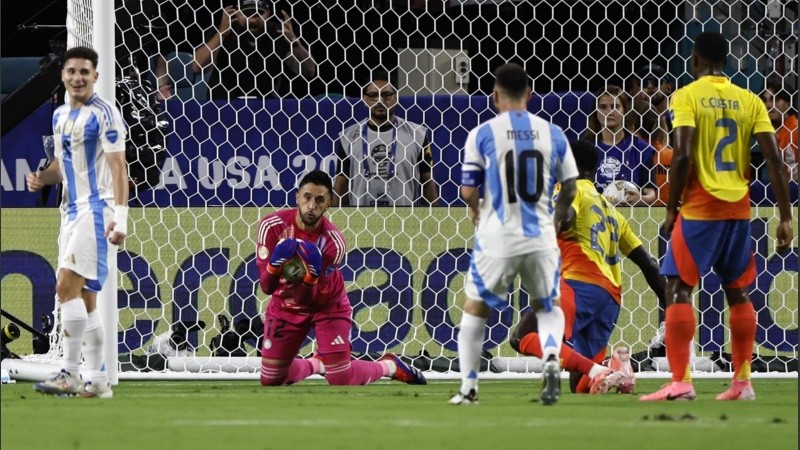 Pero en un partido que requería precisión quirúrgica, Argentina no la tuvo en los primeros 45 minutos. El partido fue vibrante, por momentos de ida y vuelta, con roces y el juego físico que, como se esperaba, propuso el equipo cafetero, que cerca de la media hora estuvo cerca de quebrar el cero mediante un remate de media distancia de Lerma, desviado con la punta de los dedos por Martínez.