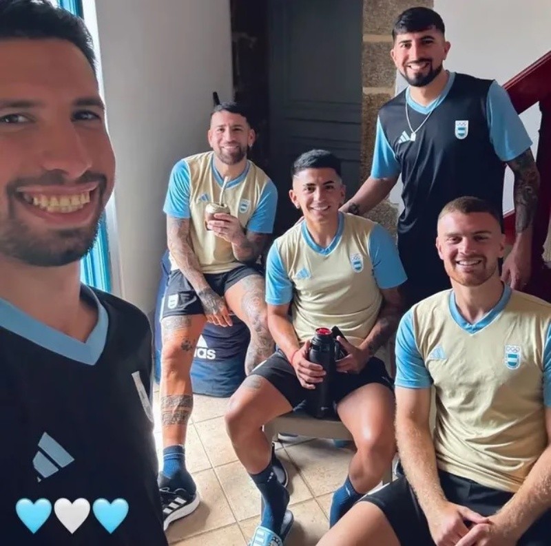 Nico (36 años) posó mate en mano con sus compañeros Lucas Beltrán y Thiago Almada –otro campeón en Qatar 2022– y dos auxiliares de la selección.