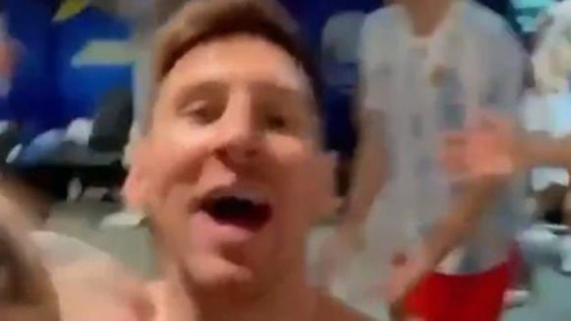 En la filmación hecha por el propio capitán de la Albiceleste, todos los jugadores cantan eufóricos y celebran el triunfo por 1-0. Leo Messi aparece en primer plano con el teléfono en su mano y con el resto de sus compañeros saltando atrás.