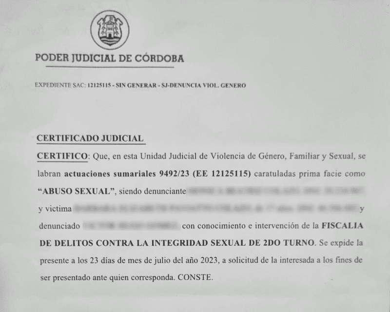 El caso está siendo investigado por la fiscal de Delitos contra la Integridad Sexual de Segundo Turno, Ingrid Vago. Mientras tanto, el Juzgado de Niñez, Adolescencia, Violencia Familiar y de Género de 1ra Nominación Secretaría 2 dispuso una orden de restricción que prohíbe al denunciado tener algún tipo de acercamiento a la joven.