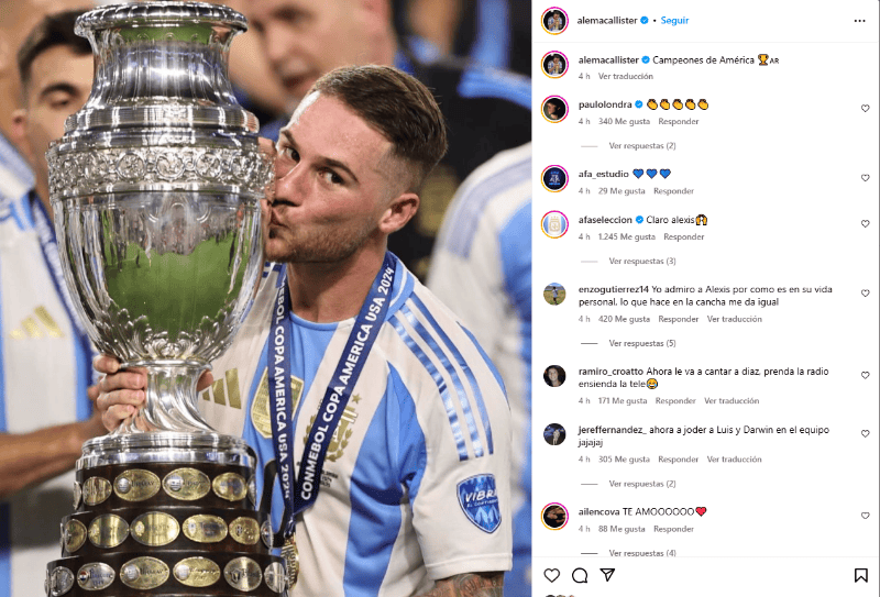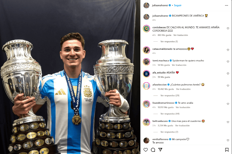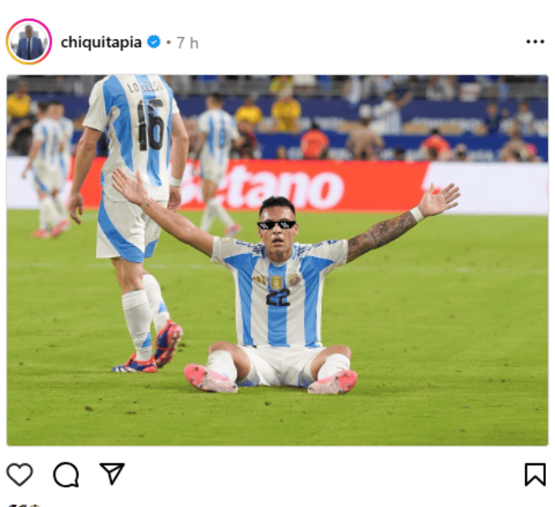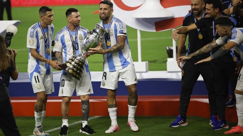 Uno de los jugadores que expresó su alegría en las redes sociales fue el capitán Lionel Messi, que subió una foto con las dos Copa América ganadas y puso: “Una más". También lo hicieron otras figuras de la Scaloneta, como Emiliano Dibu Martínez, Rodrigo de Paul, Ángel Di María y Lautaro Martínez. Hizo lo mismo el presidente de la AFA, Claudio Chiqui Tapia.
