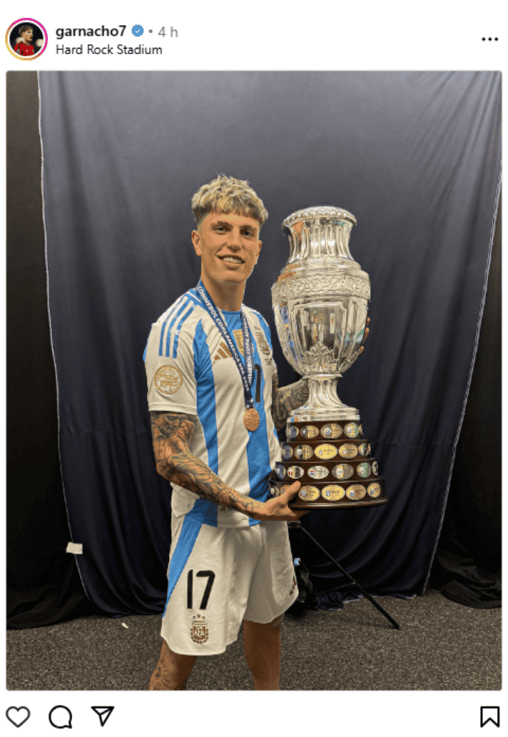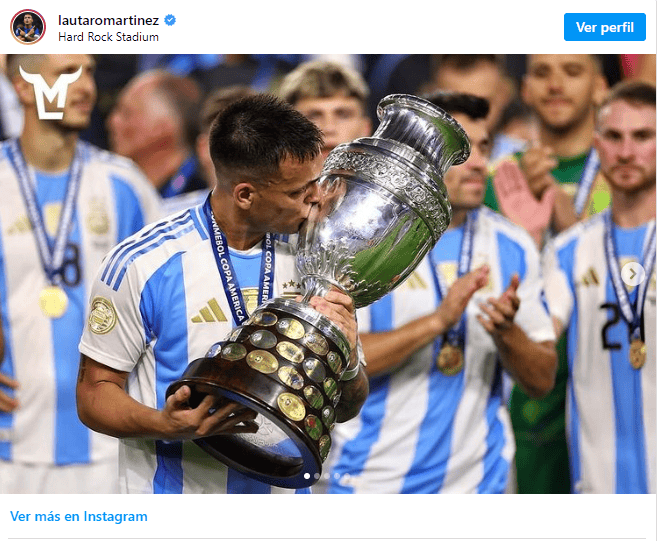 Los jugadores de la selección argentina compartieron imágenes en sus redes sociales celebrando la obtención del título de la Copa América 2024 luego de ganarle sobre el final a Colombia en tiempo suplementario.