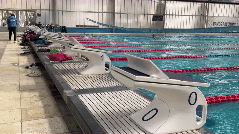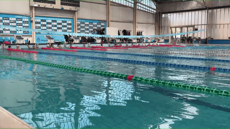 Uno de los primeros lugares de la alucinante recorrida fue el imponente Complejo Natatorio "Jeannette Campbell", que no solo alberga la pileta olímpica de 50 metros, sino también el sector de saltos, con sus colosales plataformas.