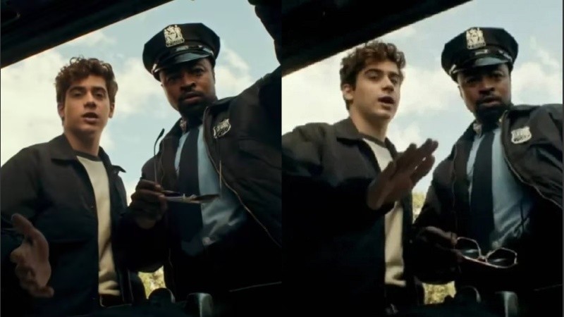 En las imágenes, el argentino recorre un trayecto en un Mustang Shelby, antes de ser detenido por un efectivo.
