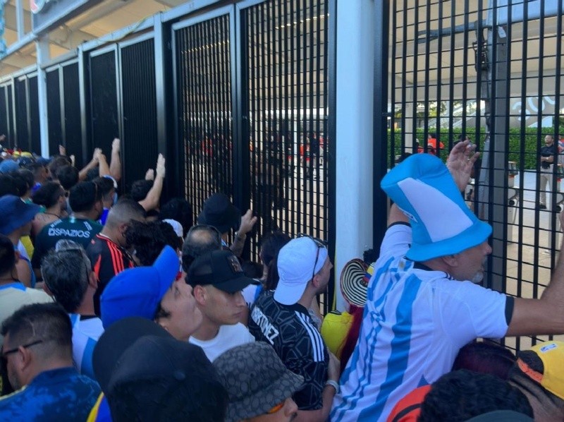 A dos horas del comienzo de la final entre Argentina y Colombia por la Copa América, se registraron incidentes entre grupos de hinchas y la Policía en uno de los accesos al Hard Rock Stadium de Miami, a donde algunos simpatizantes de ambos países, pero en su gran mayoría cafeteros, quisieron colarse sin entradas. La seguridad cerró los ingresos, miles de personas no habían podido entrar y una gran cantidad permaneció en las afueras sin tickets. Por eso, la Conmebol postergó el inicio del encuentro para las 22.20 de Argentina.