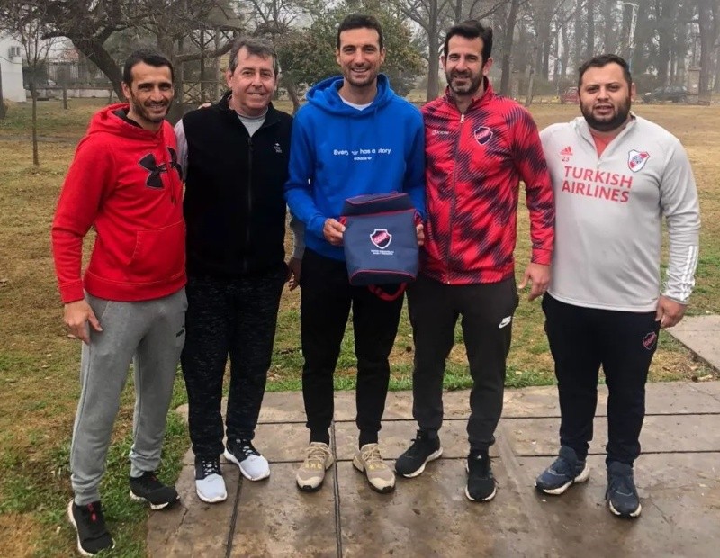 Según contaron desde el club roldanense y quedó registrado en imágenes, Scaloni se sacó fotos con todos y se llevó de regalo un bolso para mate con el escudo del CCUP.