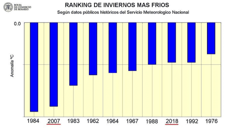 Un reciente informe de la Bolsa de Comercio de Rosario ha señalado que el invierno de 2024 se perfila para ser el segundo más frío de los últimos 60 años en Argentina. Este hecho tiene importantes implicancias para el sector agrícola, especialmente para el cultivo de trigo y maíz en la región núcleo.