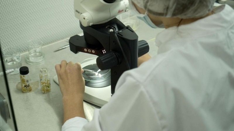 Una vez que los embriones desarrollan una planta de seis o siete centímetros, “se realiza la duplicación cromosómica con colchicina, lo que permite obtener nuevas variedades completamente estabilizadas en un tiempo considerablemente menor frente al proceso de mejora tradicional”, aclaró Leandro Ortis.