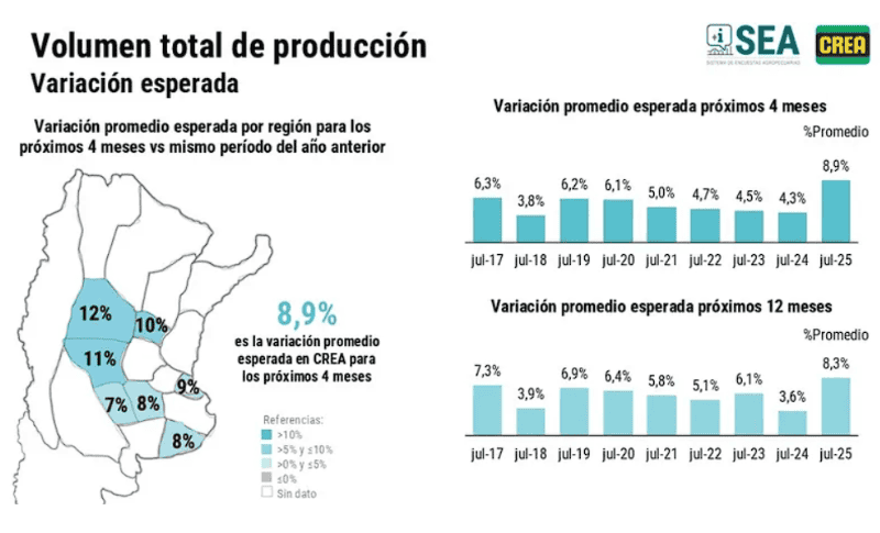 En promedio, la expectativa de crecimiento para el próximo cuatrimestre es del 8,9% versus el mismo período del año anterior, con los mayores incrementos esperados en las cuencas del norte de la región pampeana.