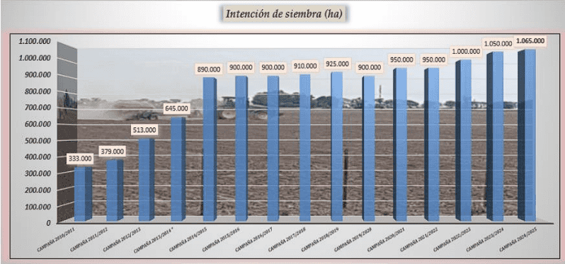 La intención de siembra estimada fue de 76.000 ha y se lograron aproximadamente 61.500 ha.